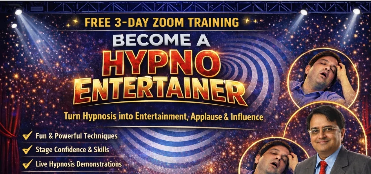 FREE 3-DAYS LIVE ZOOM TRAINING HINDI & ENGLISH MIX BECOME A HYPNO ENTERTAINER Turn Hypnosis into Entertainment, Applause & Influence Without Hypnotic Induction Ever watched a stage hypnotist & street Hypnosis On Youtube and thought… How do they make people do that? Now YOU can learn it — LIVE, ONLINE & FREE Date: 28th, 29th & 30th January 2026 Time: 8pm To 9pm Limited Seats Only THIS IS NOT THERAPY HYPNOSIS This is PURE ENTERTAINMENT HYPNOSIS 👉 Fun 👉 Powerful 👉 Audience-engaging 👉 Safe & Ethical For Zoom Link Join The Whatsapp Group Click Here To Join Hypnosis- Demonstration of Eye Open Hypnosis Forgetting Name & Number Hypnotic Imagination Games Demo
